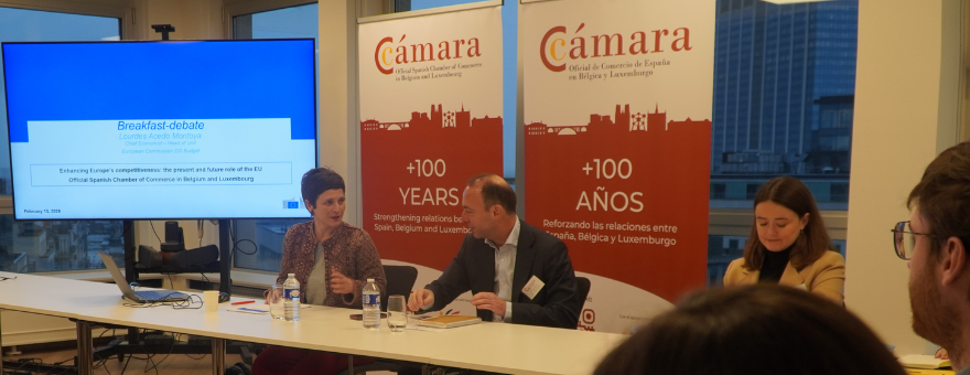 Para la jefa de unidad de Coordinación y Economista jefe (BUDG.01), Lourdes Acedo Montoya, la competitividad es una de las claves del crecimiento de Europa y el viernes 13 de febrero analizó en la Cámara Oficial de Comercio de España en Bélgica y Luxemburgo la composición del presupuesto europeo, los retos y las estrategias a seguir para mejorarla desde un punto de vista financiero.