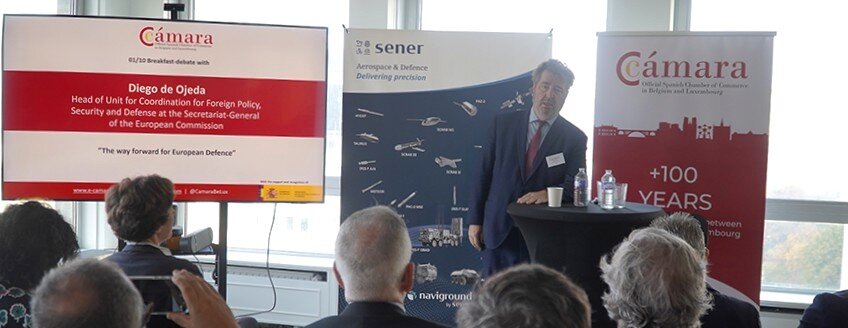 On Wednesday, October 1, Diego de Ojeda, Head of the Unit for Coordination of Foreign, Security and Defense Policy at the European Commission’s General Secretariat, presented the Commission’s vision for the future of European defense at the Chamber’s headquarters. The event was sponsored by Sener.