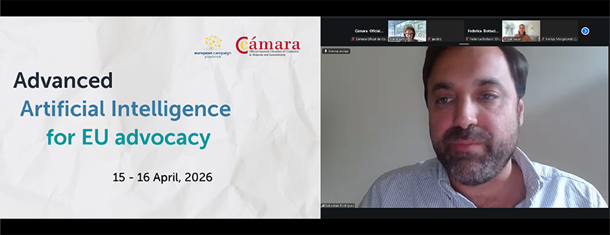 Los días 15 y 16 de abril, la Cámara Oficial de Comercio de España en Bélgica y Luxemburgo organizó una formación online sobre “Inteligencia artificial avanzada para asuntos públicos europeos”, en colaboración con Sebastián Rodríguez Pérez, consultor de campañas y fundador de European Campaign Playbook.