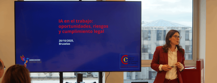 El pasado lunes 20 de octubre, la Cámara Oficial de Comercio de España en Bélgica y Luxemburgo, organizó la conferencia “IA en el trabajo: Oportunidades, riesgos y cumplimiento legal”, en colaboración con la empresa socia de la Cámara, Derecho360.